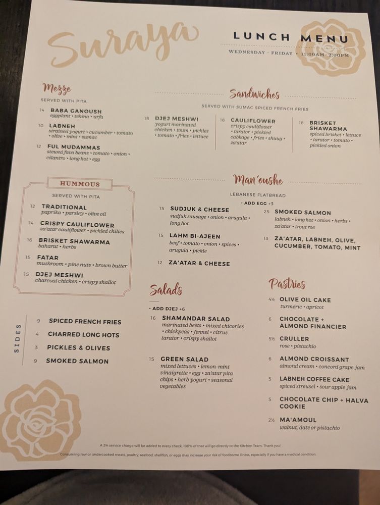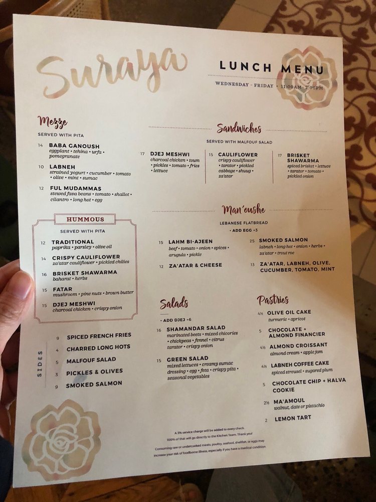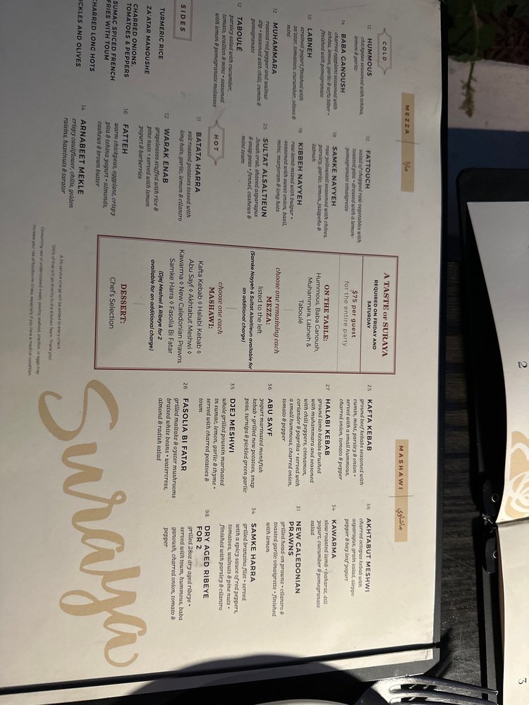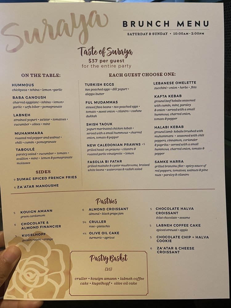 Personal favorites include the Kunafe dessert and the Kafta Kebab, both of which have been described as flavorful and cooked to perfection. The intimate and inviting space, along with the beautiful decor, adds to the overall dining experience at Suraya. Whether for brunch, lunch, dinner, or dessert, Suraya is a must-visit for those craving authentic Lebanese cuisine with a modern twist.